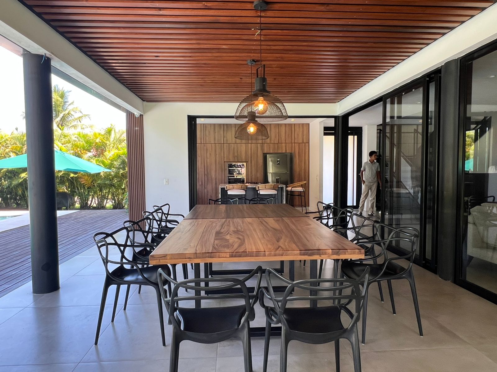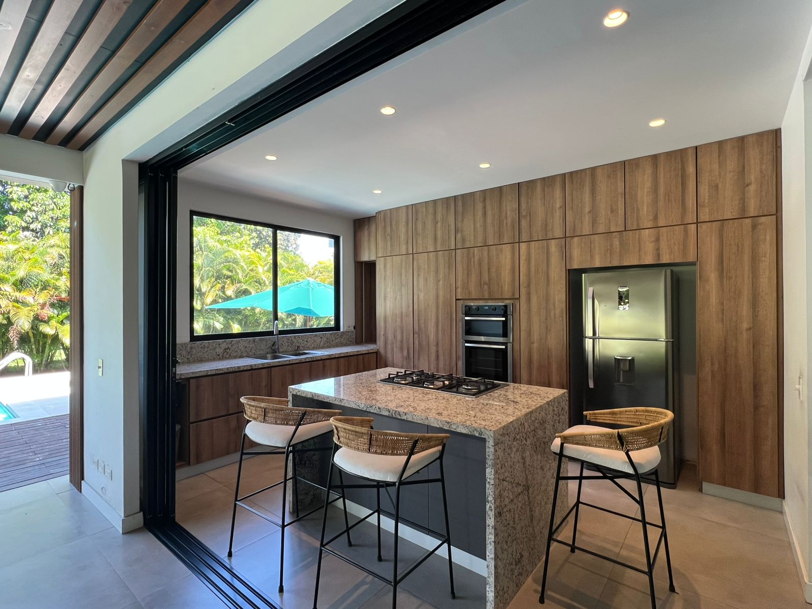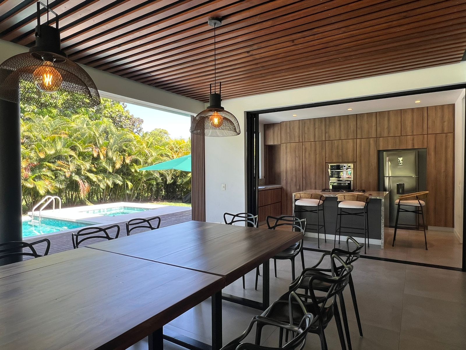Vivienda vacacional, que linda con el campo de golf; su orientación al norte permite proteger las habitaciones y la zona social del sol en la mañana y en la tarde, construida en estructura metálica, y terminada con sistemas industrializados de cerramiento como laminas de alucobond y WPC, cuenta con piscina sin fin, jacuzzy y un deck en madera. El gran protagonista la visual exterior profunda y el jardín.